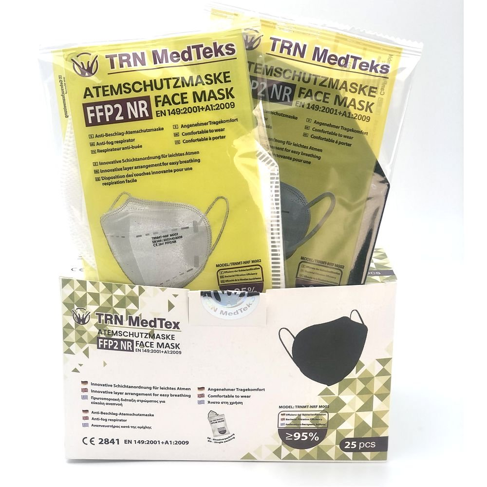 TRN MedTeks Μάσκες Προστασίας KN95 FFP2 NR 5-layer 200 τμχ Λευκό/Μαύρο