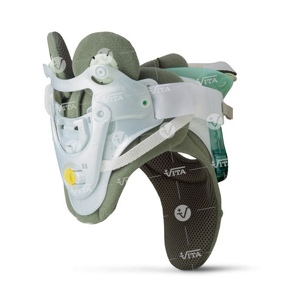 Φερει δύο αρθρωτά αυχενικά πίεστρα, ρυθμιζόμενα σε ύψος με μηχανισμό, ώστε το κολάρο να είναι συμβατό σε κάθε ασθενή. Το «Vista Therapy» είναι σχεδιασμένο να μειώνει τα συμπτώματα από την κακή στάση της αυχενικής μοίρας (πρόσθια κλίση της κεφαλής). Η μη σωστή στάση της αυχενικής μοίρας δύναται να προκαλέσει μετατόπιση των σπονδύλων, ριζίτιδα και νευροπάθεια. Η μη ισορροπημένη κατανομή βάρους στην αυχενική μοίρα οδηγεί σε επιδείνωση των μεσοσπονδήλιων δίσκων, συνδέσμων και μυών της περιοχής. Το κολάρο βελτιώνει τη στάση και την ευθυγράμμιση της αυχενικής μοίρας με τη βοήθεια ενσωματωμένου αεροθαλάμου (εισαγωγή – εξαγωγή αέρα, με χρήση αντλίας). Στο οπίσθιο τμήμα του κολάρου υπάρχει ενσωματωμένο προσθαφαιρούμενο «Gell pad» για χρήση κρυοθεραπείας και θερμοθεραπείας, σε φλεγμονώδεις καταστάσεις.