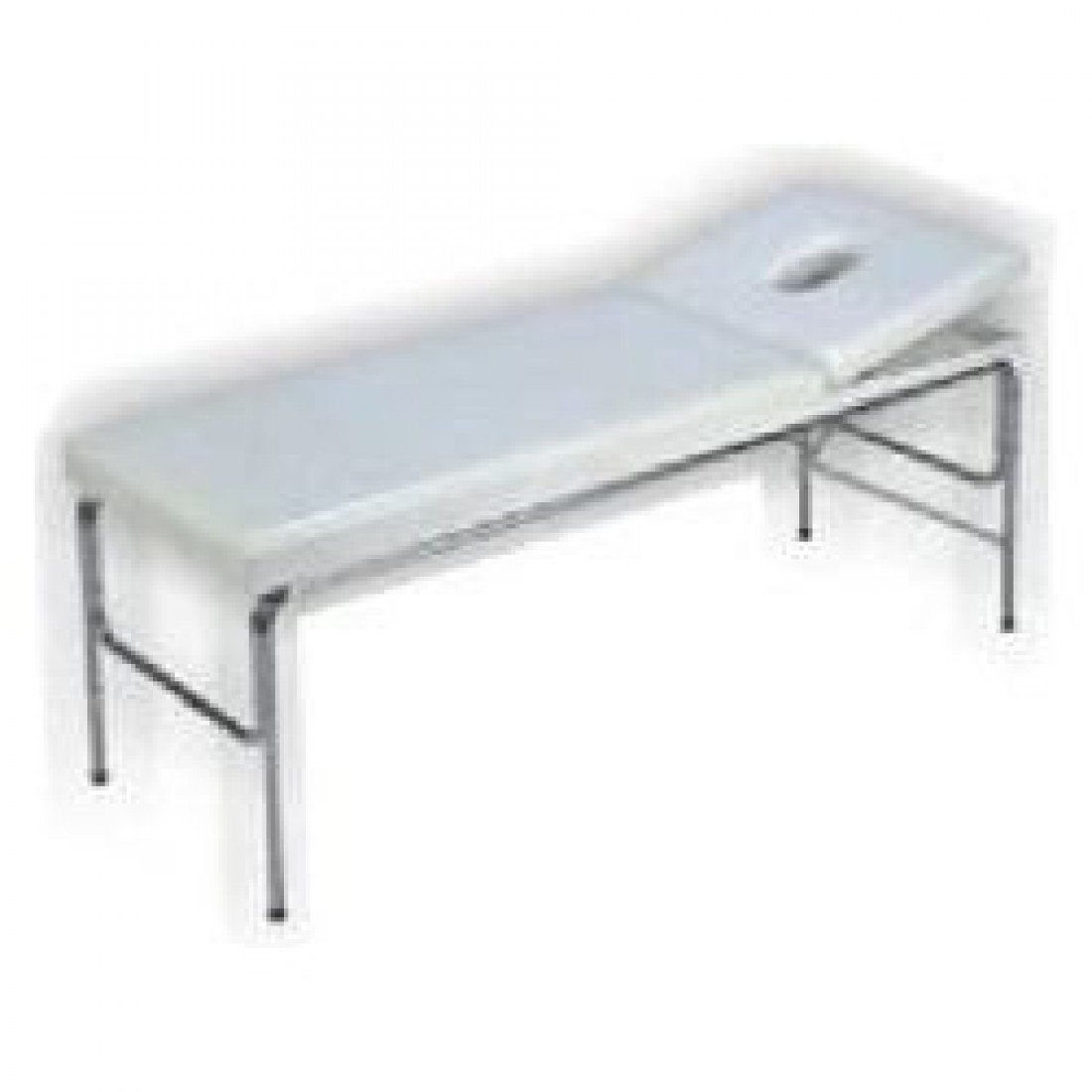 Εξεταστική κλίνη με οπή και ίσιο προσκέφαλο με δυνατότητα ανάκλισης πλάτης.