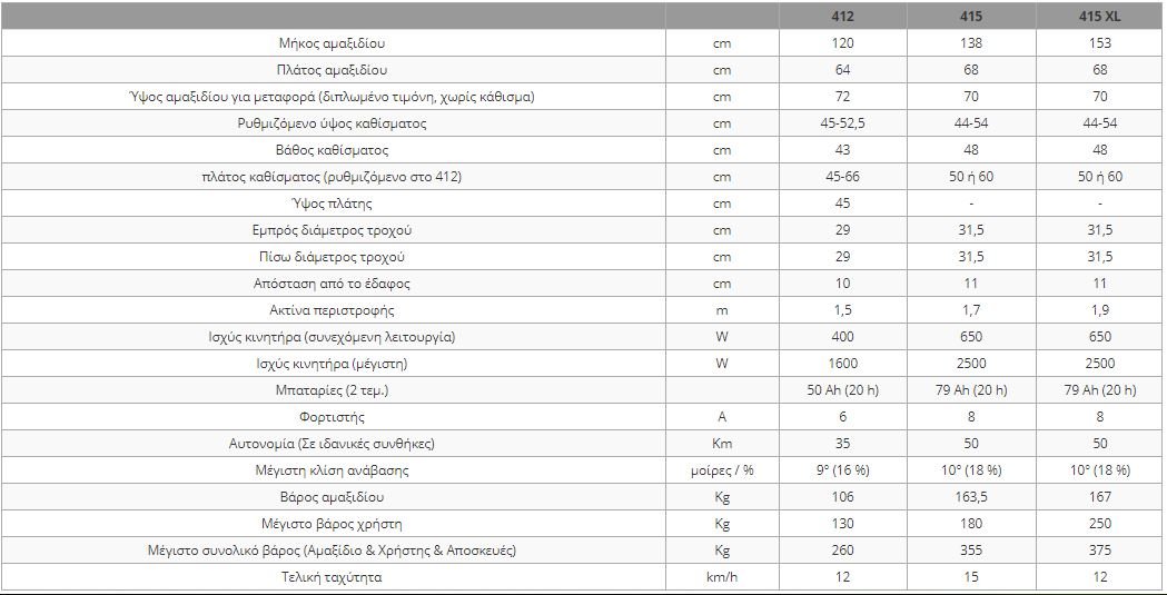 Φαρδύ κάθισμα 60cm (μόνο για τα μοντέλα 415 & 415 XL)