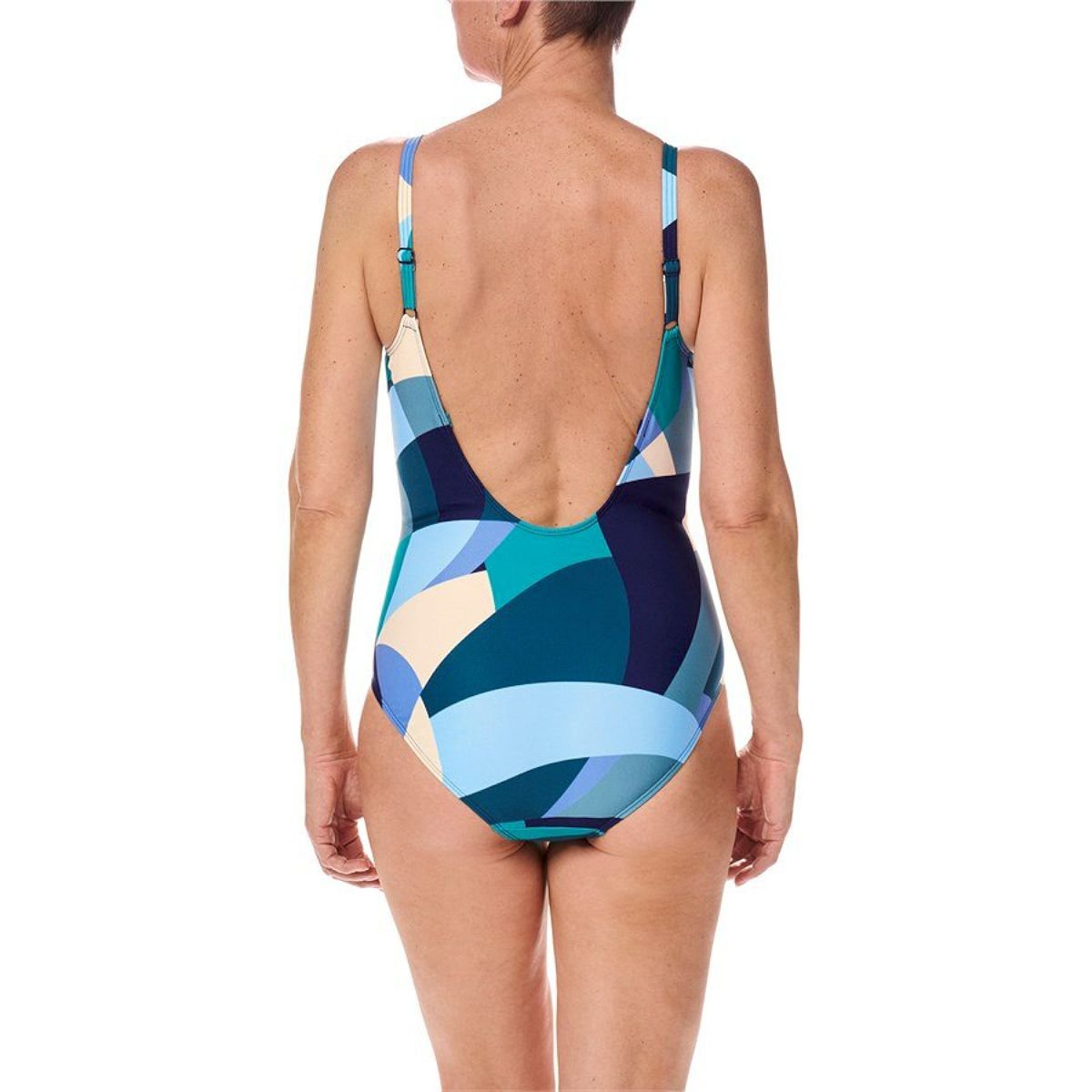 - Ολόσωμο μαγιό με κυματισμούς σε αποχρώσεις του μπλε για μια έξτρα καλοκαιρινή εμφάνιση στην παραλία.