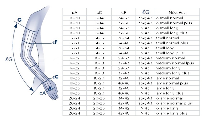 lG: μήκος από τον καρπό μέχρι το τέλος του μπράτσου.
