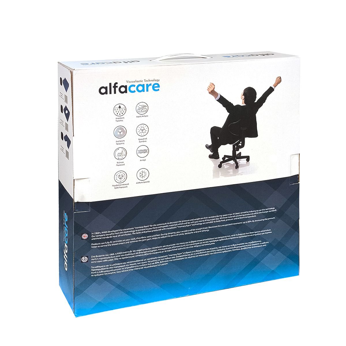 - Μαξιλάρι με ειδική επένδυση gel στο κέντρο, ειδικά σχεδιασμένο για την αποφόρτιση των σημείων που δέχονται αυξημένη πίεση στην καθιστή θέση.