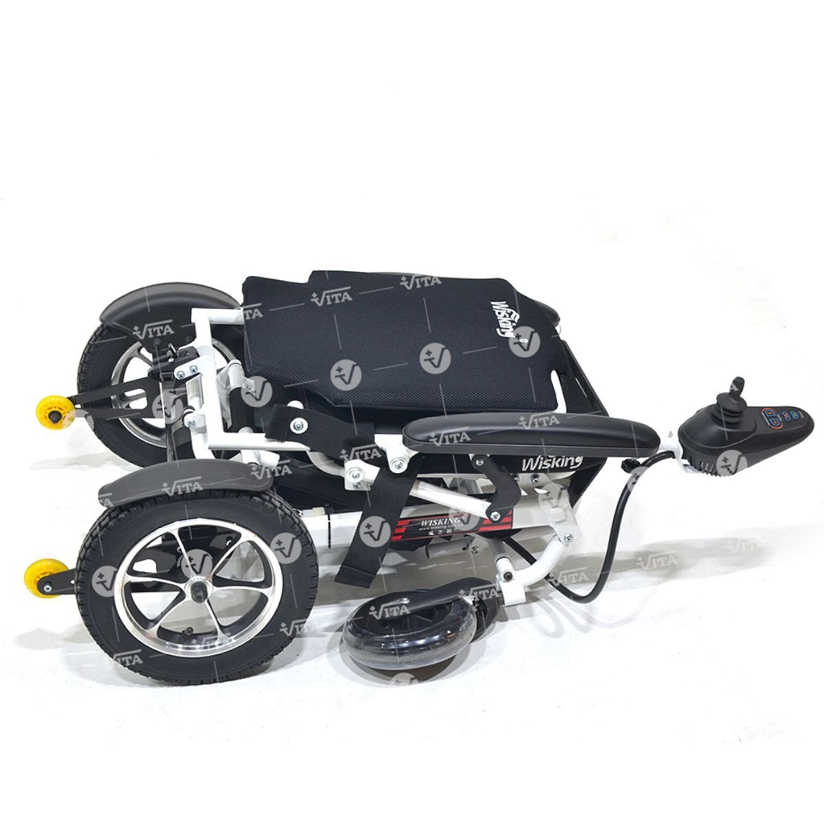 Ηλεκτρική καρέκλα αλουμινίου, πτυσσόμενη. Ιδιαίτερα ελαφριά και αναπαυτική. Αποσυναργμολογείται πολύ εύκολα για αποθήκευση και μεταφορά. Η μπαταρία αφαιρείται. Ανακλινόμενο υποπόδιο. Η επένδυση της πλάτης και του καθίσματος αφαιρούνται και πλένονται. Το χειριστήριο μπορεί να τοποθετηθεί και στις δύο πλευρές. ∆ιαθέτει σάκο αποσκευών κάτω από το κάθισμα.