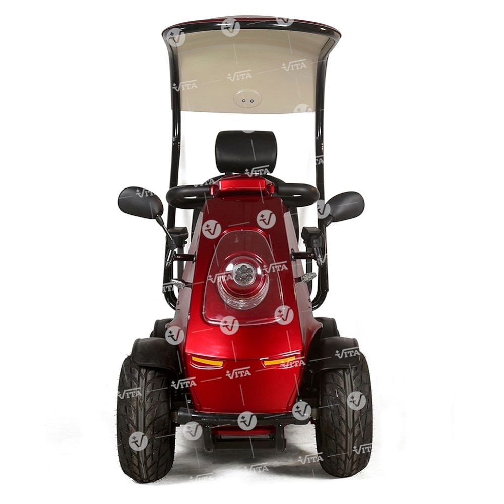 Βαρέως τύπου ηλεκτροκίνητο scooter, τετράτροχο. Καινοτόµος σχεδιασµός. Απόλυτα ασφαλές µε τέλειες επιδόσεις. Μοτέρ µε ικανότητα µεταφοράς ατόµου 180 κιλών. Με 140amp microprocessor χειρισµό. Φέρει κάλυπτρο οροφής για την βροχή και τον ήλιο. Σύστηµα φωτισµού “LED”. Λάστιχα µε αέρα για άνεση και εξαιρετικές επιδόσεις.