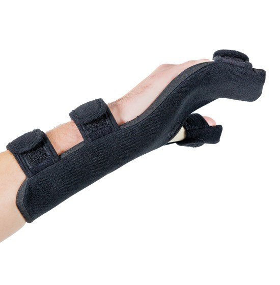 Εργονομικός πηχεοκαρποδακτυλικός νάρθηκας άκρας χειρός. Κατασκευή από πλαστικό υλικό με αφρώδη υποαλλεργική επένδυση. Σταθεροποιεί τον καρπό και τον αντίχειρα σε ουδέτερη θέση με ελαφριά κάμψη δακτύλων. Αυτοκόλλητη επίδεση του νάρθηκα σε 4 σημεία.
