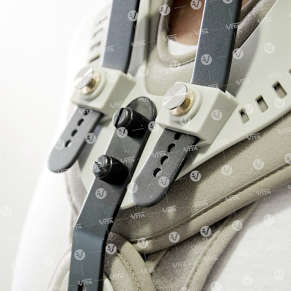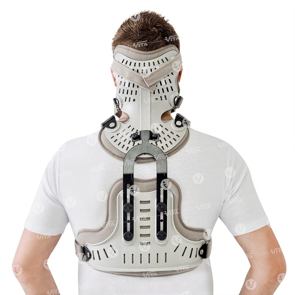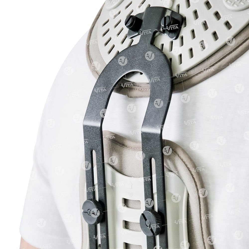 Φέρει ενσωματωμένο μετωπιαίο ιμάντα ακινητοποίησης της κεφαλής. Το πρόσθιο τμήμα στήριξης της κάτω γνάθου καθώς και το οπίσθιο του ινιακού οστού ρυθμίζονται σε θέσεις επιλογής (αυξομείωση ύψους). Το υποσιάγωνο αφαιρείται εύκολα διευκολύνοντας τον ασθενή στη σίτιση. Η δυνατότητα αφαίρεσης του θωρακικού και ραχιαίου τμήματος επιτρέπει την αυτονομία του αυχενικού νάρθηκα (στην κρίση του θεράποντα ιατρού). Ο νάρθηκας εφαρμόζεται και σε ύπτια θέση.