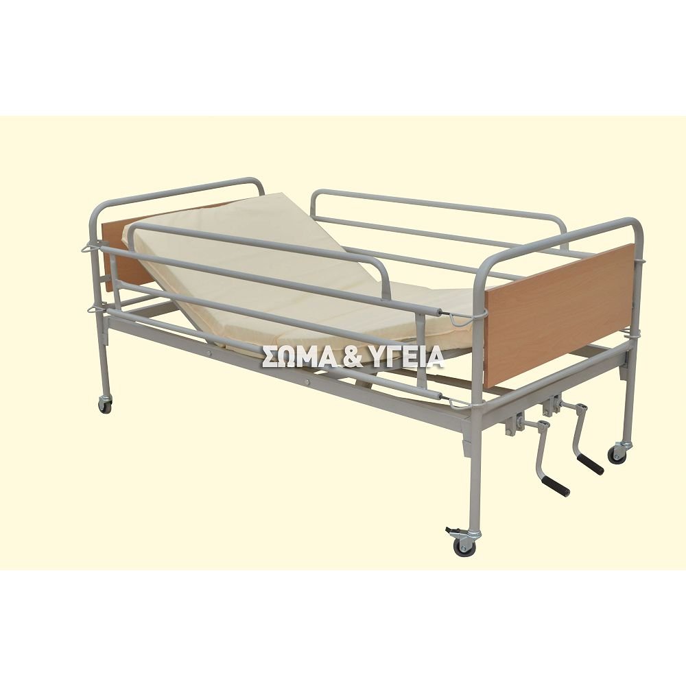 Νοσοκομειακό κρεβάτι 1,20 με δύο μανιβέλες για την ρύθμιση της κλίσης της κεφαλής και των ποδιών.