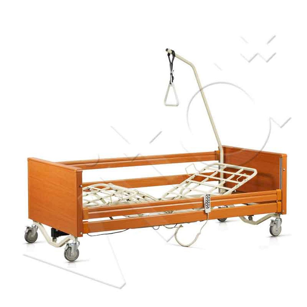 Πολύσπαστη ηλεκτρική κλίνη, με επένδυση ξύλου. Μεταλλικό σομιέ με παράλληλες μπάρες στήριξης του στρώματος. Η ανύψωση της πλάτης και η ανάκλιση των ποδιών, πραγματοποιούνται με ηλεκτρικό χειριστήριο το οποίο κλειδώνει προς αποφυγή ατυχημάτων. Το συνολικό ύψος της κλίνης ρυθμίζεται ηλεκτρικά σε θέσεις επιλογής.