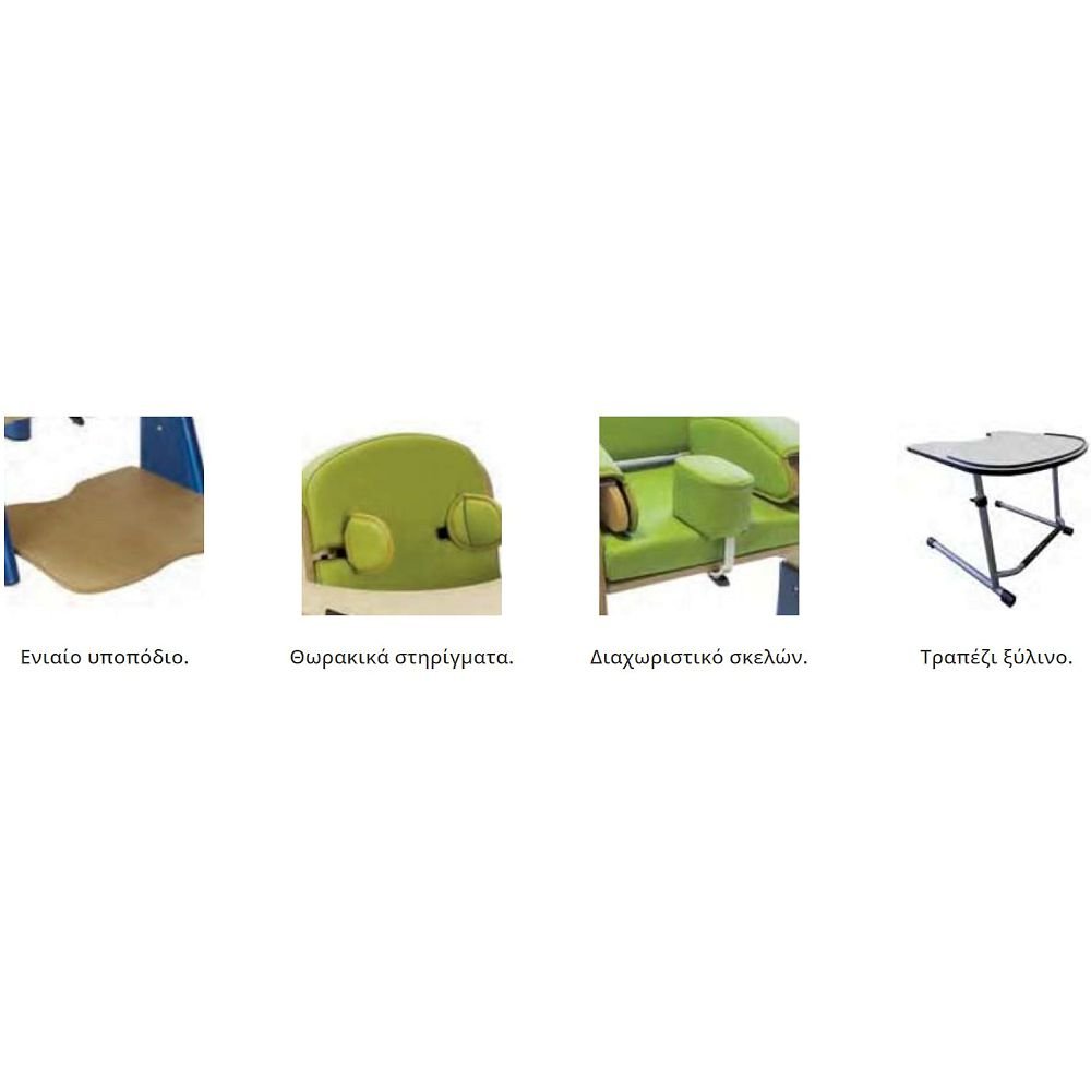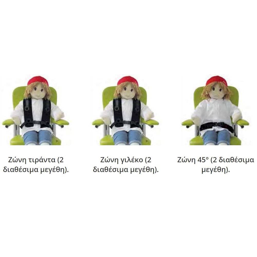 Ρυθμίζεται εύκολα, γρήγορα και είναι ειδικά διαμορφωμένο ώστε το κάθισμα να μπορεί να προσαρμοστεί στο παιδί. Αγκαλιάζει το παιδί και το κάνει να αισθάνεται ασφαλές και έτοιμο για παιχνίδι.