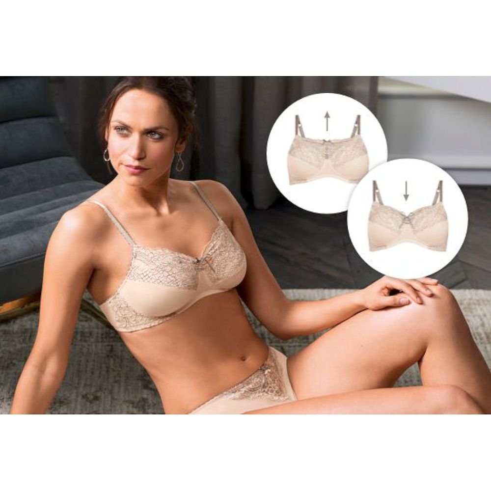 Μπορεί να φορεθεί με δύο διαφορετικούς τρόπους, ανάλογα με τη διάθεσή σας, χάρη στις δύο λεπτές κορδέλες στο μπροστινό μέρος. Τραβώντας τες, ο στηθόδεσμος αποκτά ψηλή λαιμόκοψη (τύπου camisole), καλύπτοντας ατέλεις από ουλές ή εγκαύματα, ενώ δένοντάς τες μπορείτε να ρυθμίσετε το ντεκολτέ σε πιο χαμηλό ύψος.